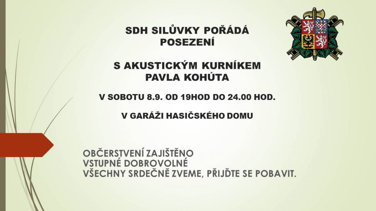 SDH SILŮVKY pořádá v sobotu 8.9.2018 od 19,00-do 24,00hod posezení s Akustickým kurníkem Pavla Kohúta